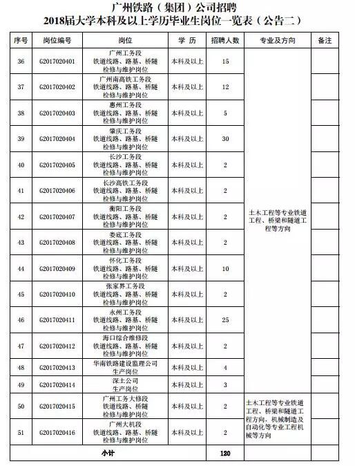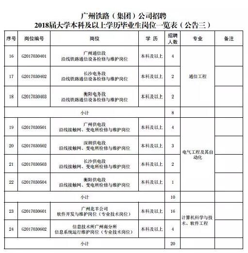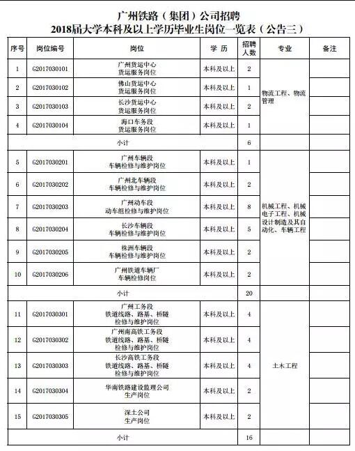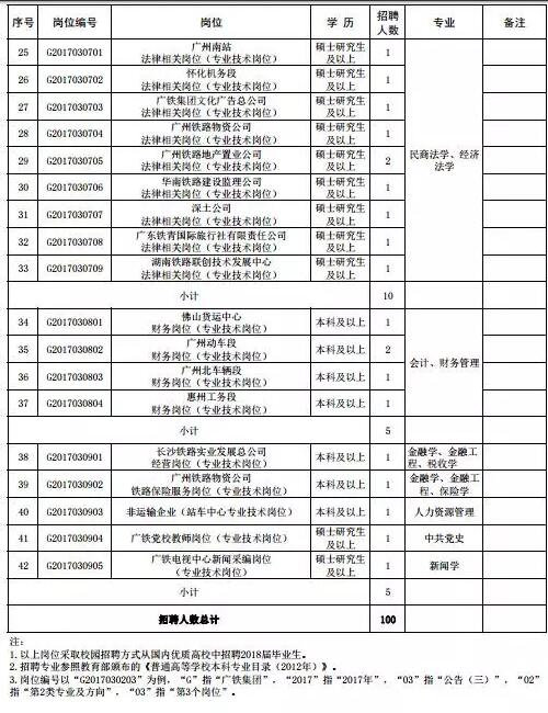 广州铁路(集团)公司根据企业经营发展需要,拟采取校园招聘方式招聘2018届大学本科及以上学历毕业生,现将有关事项公告如下: