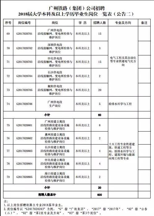 本批次计划招聘铁路主专业大学本科及以上学历毕业生600人,具体岗位、人数、专业及要求详见附表。