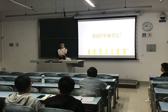 最后,黄老师对三位同学的分享给予充分的肯定,他讲到,三位同学从面试前期的准备到面试环节的详细介绍及注意事项讲解的非常到位,并对个人职业规划以及学院的就业指导提出了良好建议。同时黄老师对低年级的同学在就业方面提出了自己的建议,一是要充分利用寒暑假的时间多参加单位实习,在实习的过程中锻炼提高自己的工作素养和能力,并慢慢的找到自身的就业方向,给自己较为准确的职业定位;二是要利用各种场合锻炼提高自己的言语表达能力,特别是面试情景下的表达能力;三是要敢于尝试勇于尝试,充分利用大学四年时间明确自身的职业规划,切勿浪费光阴。