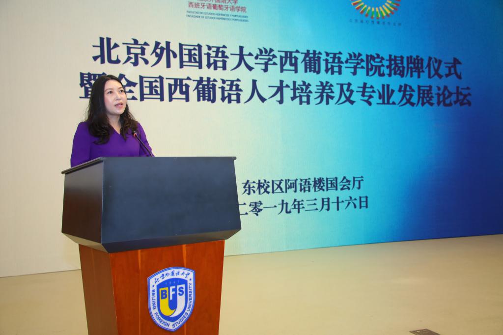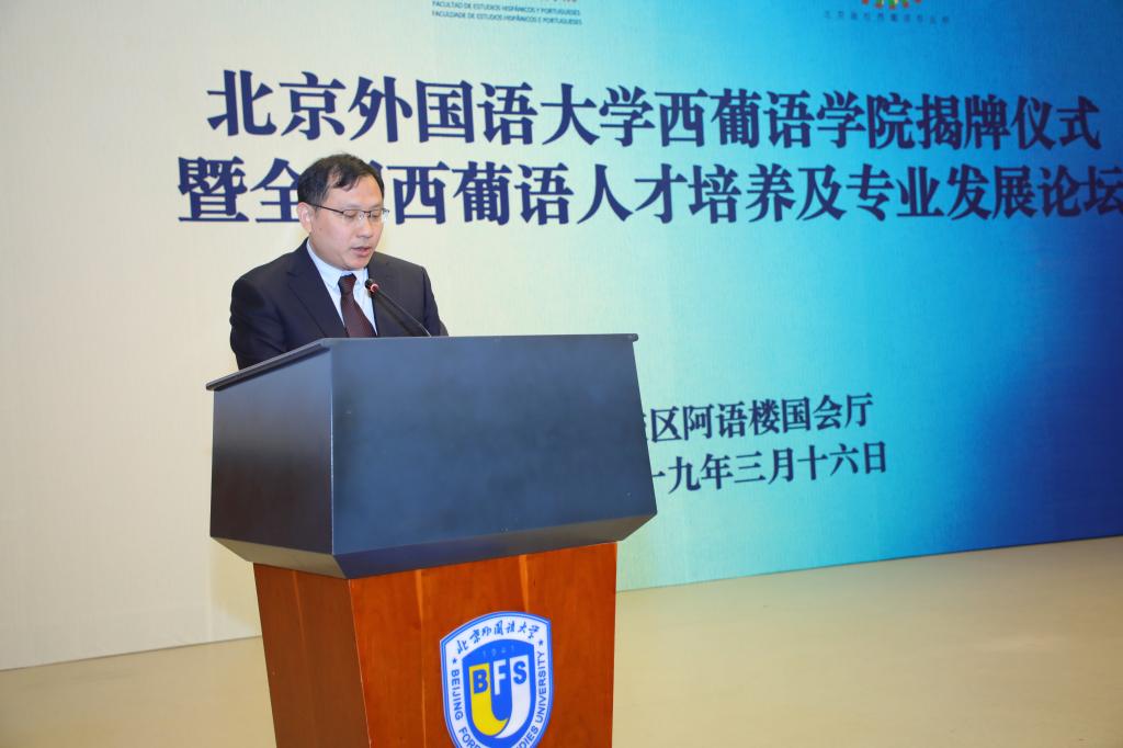 北外西葡语学院党总支书记刘建回顾了北外西班牙语专业近70年和葡萄牙语专业近60年的发展成果。他表示,北外西葡人始终不忘初心、辛勤耕耘,为服务国家和社会,开启和提升中国和西葡语国家的交流做出了巨大贡献;同时在科学研究方面获得了多项成果,填补了国内外空白,代表了国内西葡语学科发展的最高水准。进入21世纪以来,北外西葡语学院更是迎来了最好的发展时期,无论是办学规模、人才培养模式、师资水平、国际交流等方面都迈上了新台阶。新成立的西葡语学院将下设两个系、4个研究中心,具有更加完善的教学体系。在未来发展中,学院将在保证西葡语专业传统的同时,加强西葡语学科建设,推进全面综合发展,继续走在全国西葡语教育前列;同时与其他院校共同合作,建设高水平学术交流平台。