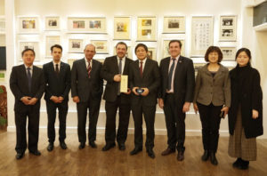 4月10日下午,乌拉圭中央银行行长马里奥•贝尔加拉(Mario Bergara)在乌拉圭驻华大使费尔南多•卢格里斯(Fernando Lugris)、乌拉圭央行副行长乔治•加马拉(Jorge Gamarra)的陪同下访问金年会官网,并作专题讲座。校长彭龙会见了贝尔加拉一行。